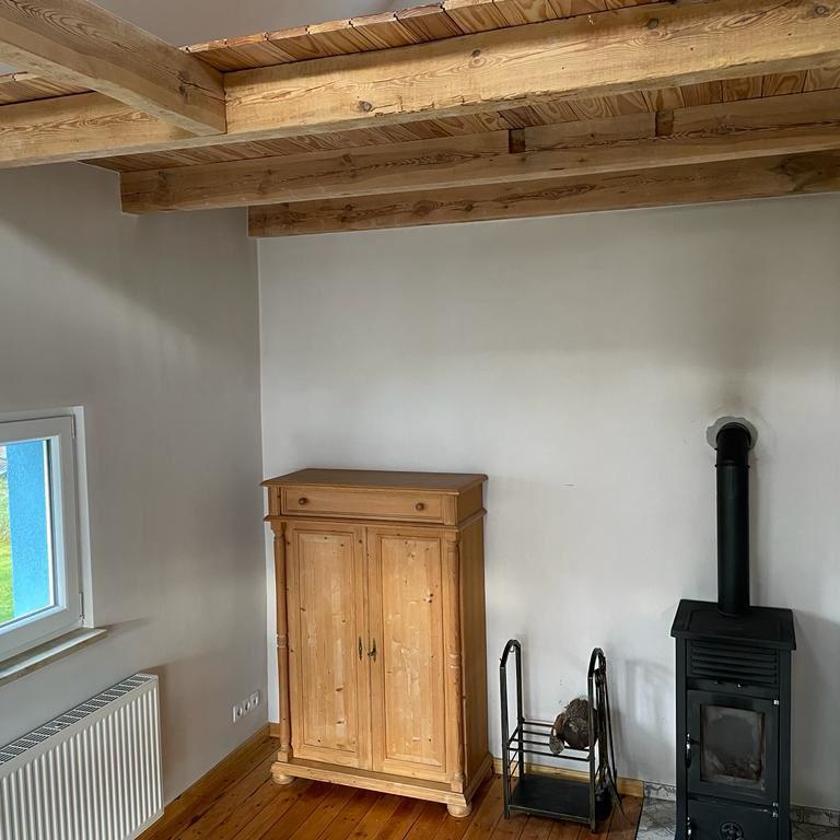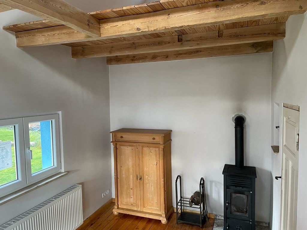 Dieses zweite Gebäude (24m2) wurde 1937 als erstes auf dem Grundstück erbaut und 2021 liebevoll modernisiert und kernsaniert. Es besitzt Schlafmöglichkeiten unter dem Dach, ein eigenes Bad und eine Wohnküche mit Kamin. Richtung Süden gibt es große Fenster und Türfronten, die viel Licht hereinlassen. Ideal geeignet für: Homeoffice, Vermietung etc.