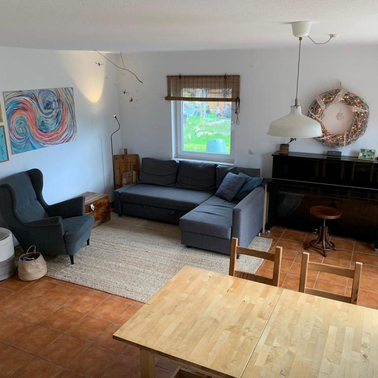 Auf 83m2 im Haupthaus gibt es eine große Wohnküche, zwei Schlafzimmer, ein Badezimmer sowie ein separates Gäste-WC.