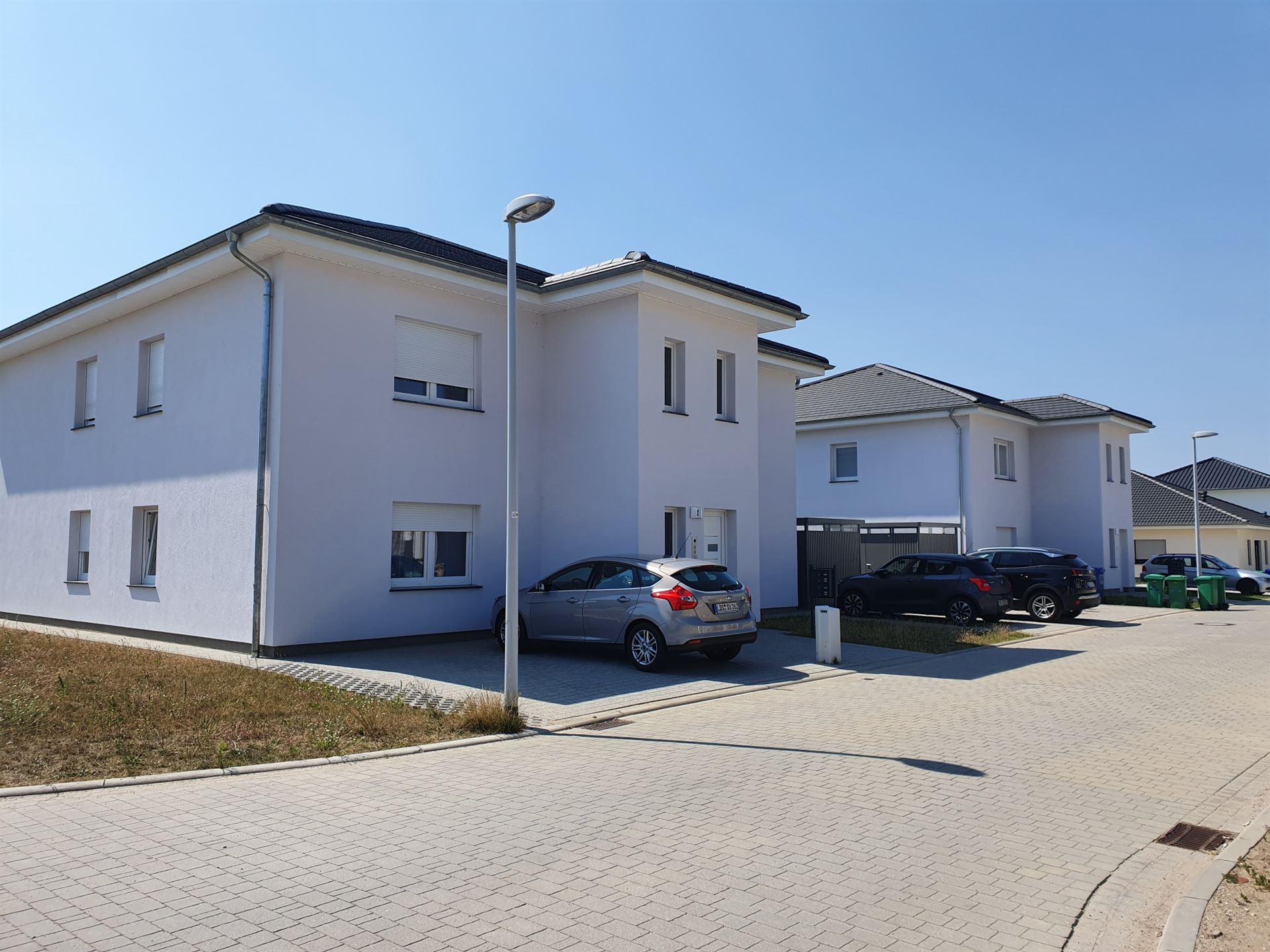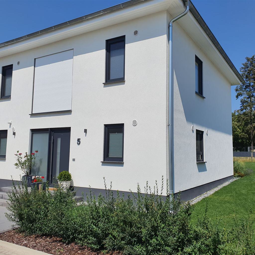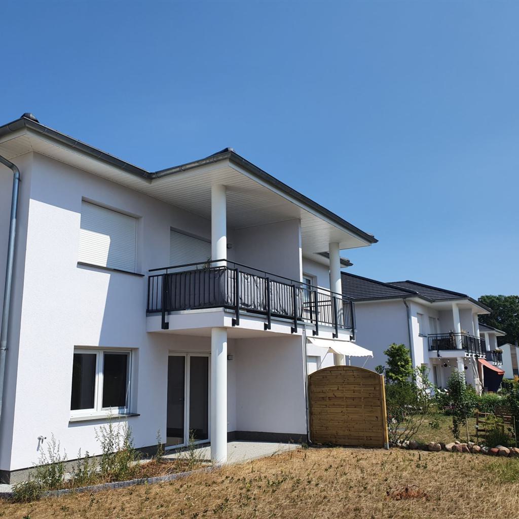 Zum Verkauf stehen insgesamt 16 barrierefreie Eigentumswohnungen mit gehobenem Standard. Diese verteilen sich auf jeweils 4 baugleiche massive 4-Familienhäuser, welche im März 2022 fertig gestellt wurden und KfW55-Standard erfüllen. Jede Wohnung verfügt über ca. 70m², eine Einbauküche (inkl. elektrischen Geräten), Fußbodenheizung, einen Stellplatz und Gartenteil. Die Bäder haben ein Fenster. Die Wohnungen können einzeln oder im Paket erworben werden. Der Erwerb ist für den Käufer provisionsfrei.