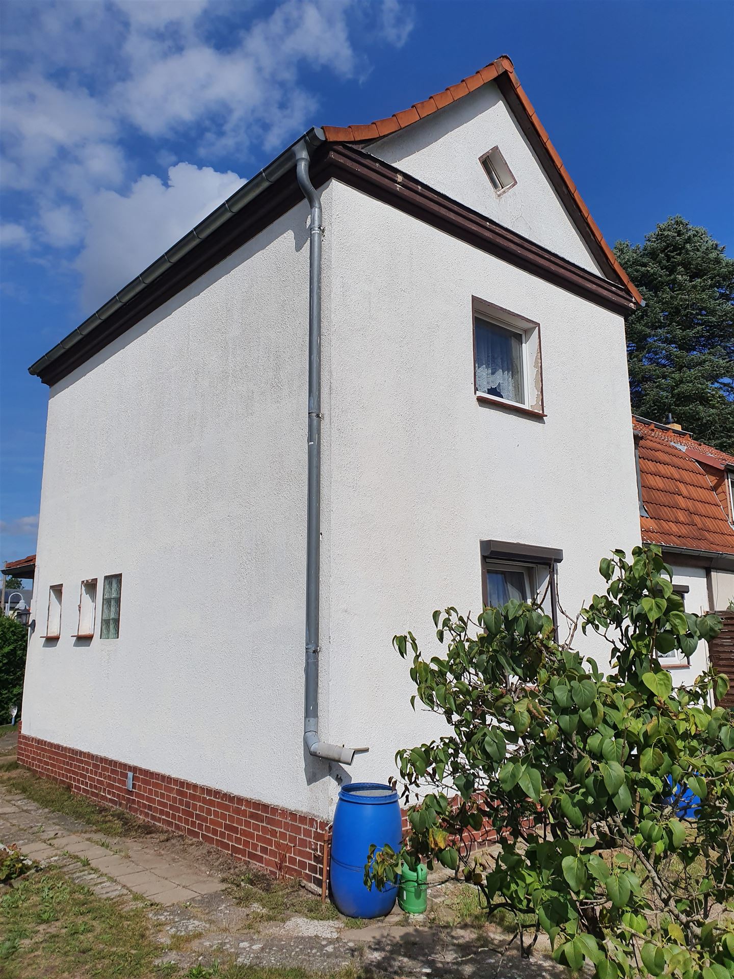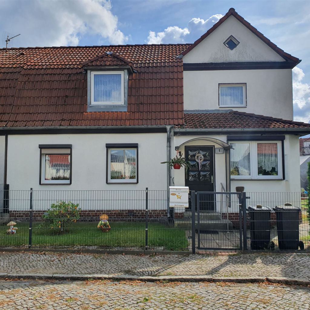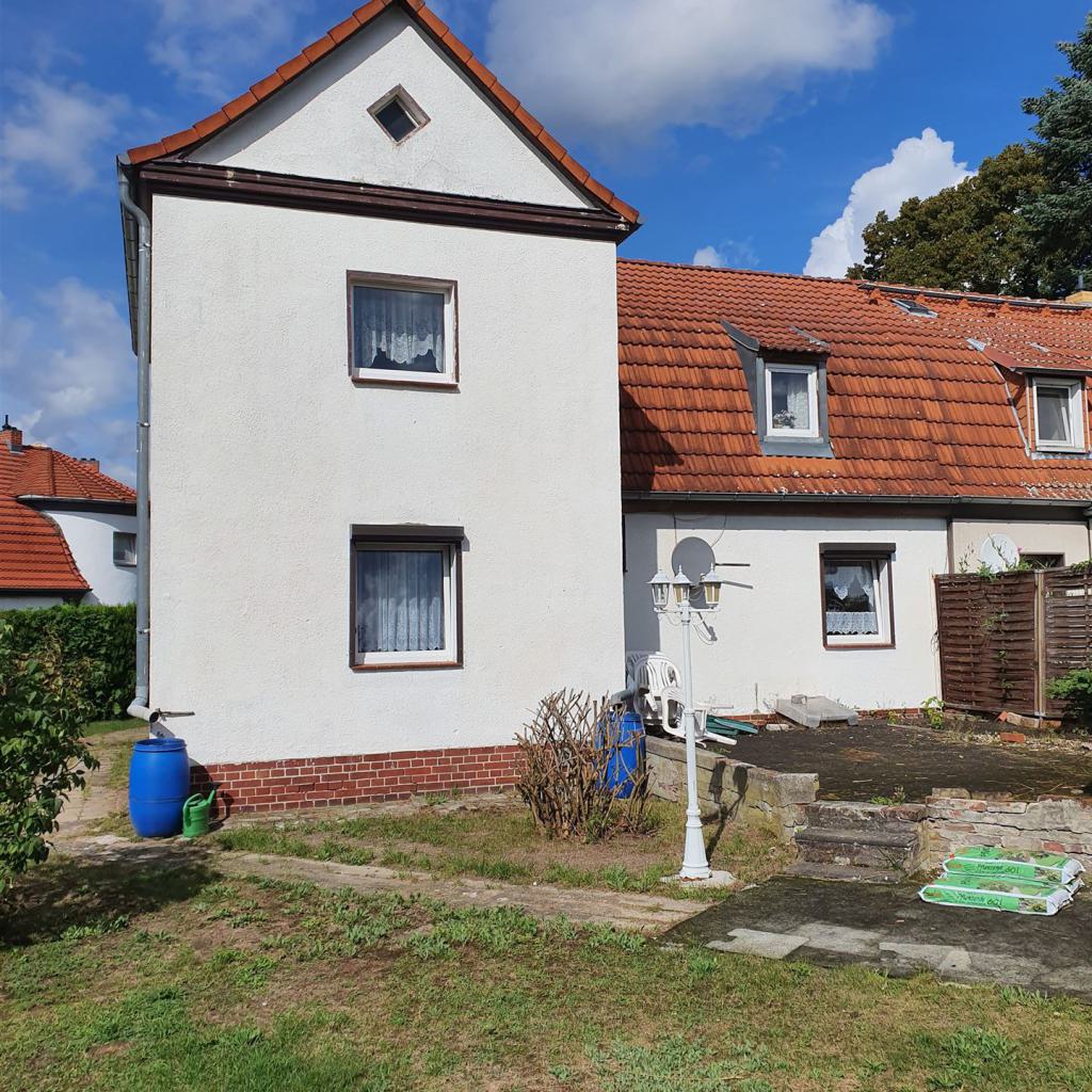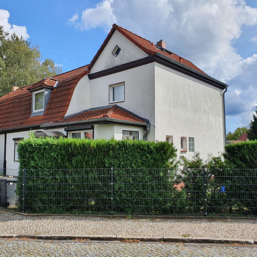 Das zum Verkauf stehende Grundstück ist 427m² groß und mit einer Doppelhaushälfte aus dem Jahre 1922 bebaut und voll erschlossen. Es bietet die Möglichkeit zur Errichtung eines Carports. Die Immobilie besteht aus 2 Vollgeschossen, einem Dachboden, ist teilunterkellert und befindet sich in einem soliden Zustand mit Möglichkeiten zur freien Gestaltung. Sie verfügt über Holzdielenfußboden und zentrale Warmwasserversorgung. Die Fenster bestehen aus Kunststoff und sind doppelt isolierverglast. Im EG sind Metallrollläden angebracht. Die Gaszentralheizung stammt aus dem Jahr 2009. Das Dach ist mit Ziegeln eingedeckt. Die Abwasserentsorgung erfolgt öffentlich.