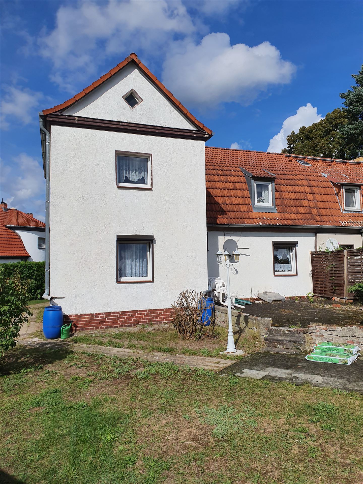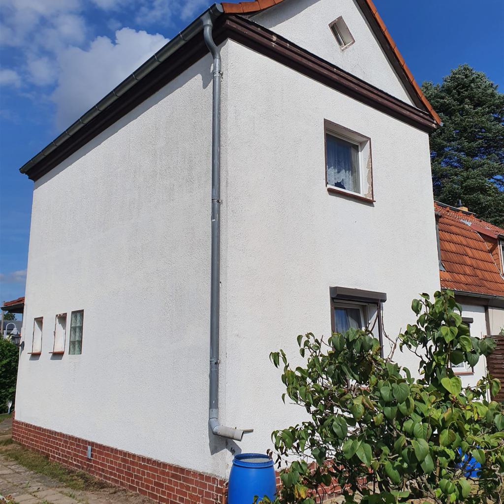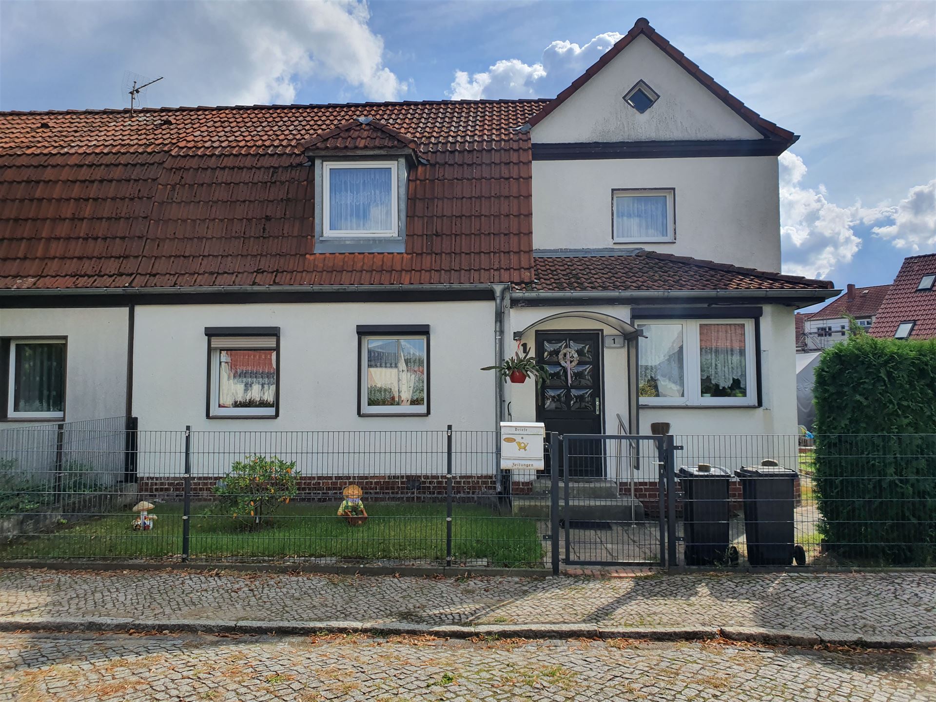 Das zum Verkauf stehende Grundstück ist 427m² groß und mit einer Doppelhaushälfte aus dem Jahre 1922 bebaut und voll erschlossen. Es bietet die Möglichkeit zur Errichtung eines Carports. Die Immobilie besteht aus 2 Vollgeschossen, einem Dachboden, ist teilunterkellert und befindet sich in einem soliden Zustand mit Möglichkeiten zur freien Gestaltung. Sie verfügt über Holzdielenfußboden und zentrale Warmwasserversorgung. Die Fenster bestehen aus Kunststoff und sind doppelt isolierverglast. Im EG sind Metallrollläden angebracht. Die Gaszentralheizung stammt aus dem Jahr 2009. Das Dach ist mit Ziegeln eingedeckt. Die Abwasserentsorgung erfolgt öffentlich.